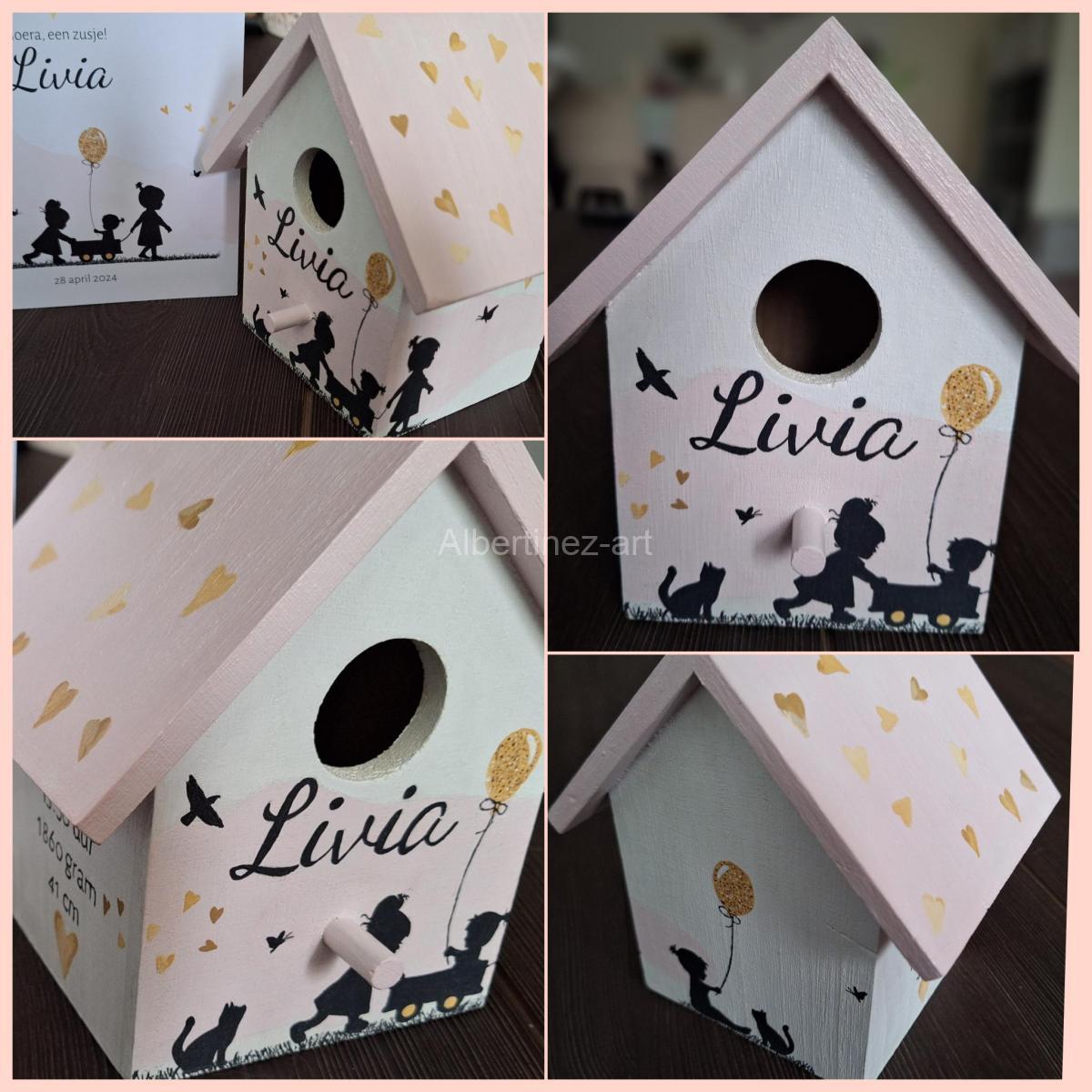 Albertinez-art blijft proberen om nieuwe artikelen toe te voegen in het assortiment. Het nieuwste artikel is het geboortevogelhuisje.
