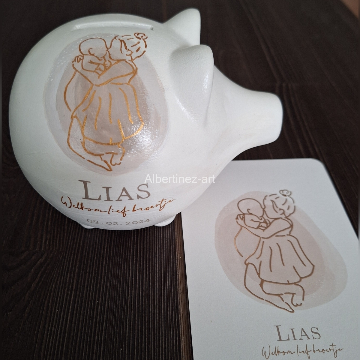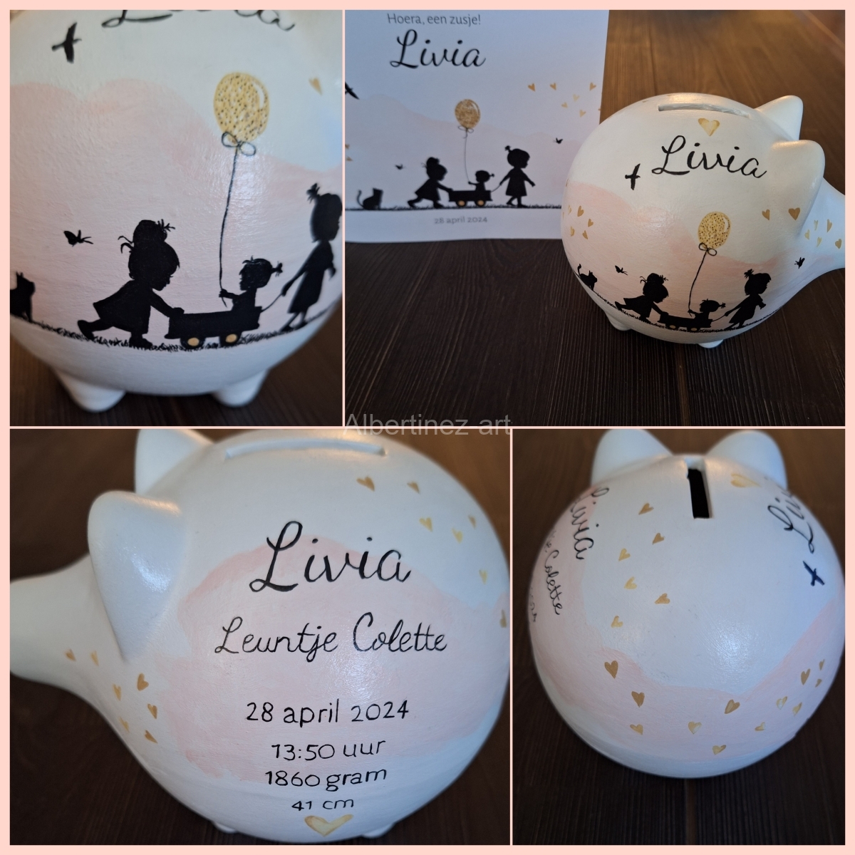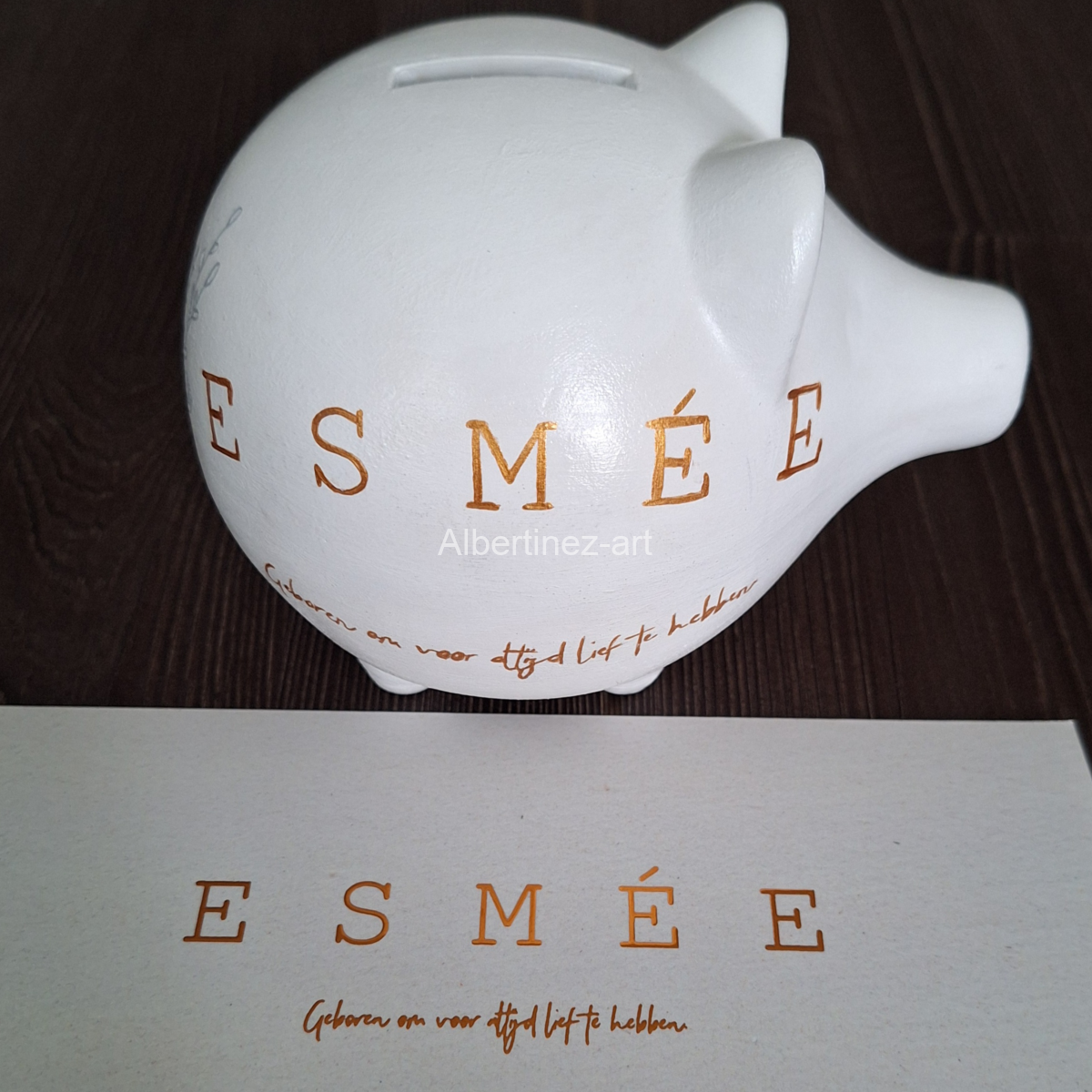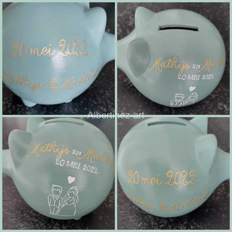 Deze kan worden beschilderd met de afbeelding en gegevens van een geboortekaartje. Maar eigen ideeën en wensen zijn ook mogelijk. Hierdoor is dit leuk om te geven voor bijvoorbeeld een verjaardag of een bruiloft. Ook erg leuk om te geven als kraamcadeau als eerste spaarpotje.